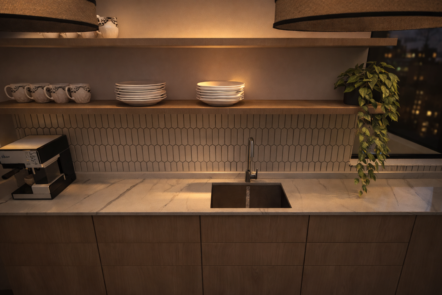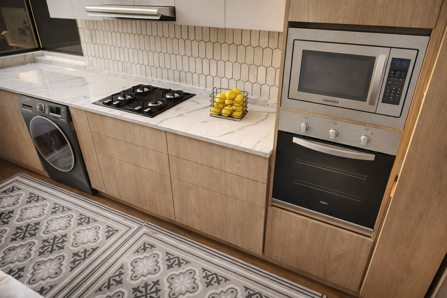 Esta propuesta de diseño consitstió en mejorar la circulación y la optimización del espacio, creando nuevas áreas de guardado, funcionalidad e integración con el lavadero. Se buscaba un estilo moderno y clásico, con colores que compongan el espacio y destaquen la luz natural que ingresa.